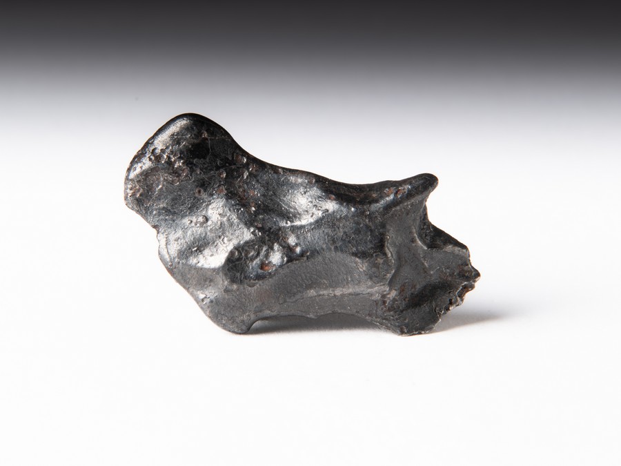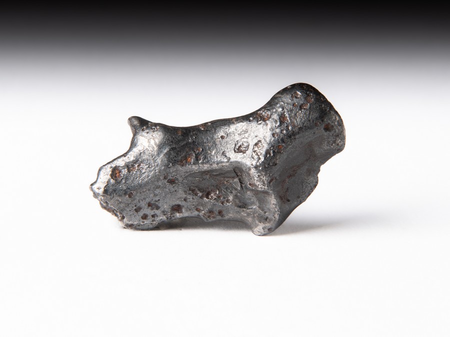 Wunderschöner Sikhote-Eisenmeteorit (sog. Individual) mit deutlich ausgeprägten Regmalglypten. Regmalglypten sind kleine Schmelzvertiefungen, die beim Aufschmelzen der Meteoritenoberfläche während des Eintritts in die Erdatmosphäre entstanden. Diese Regmaglypten, die auch von anderen Meteoriten bekannt sind, sind bei den Sikhote-Alin-Meteoriten besonders ausgeprägt. Sikhote-Alin-Meteoriten in dieser Qualität werden nur noch sehr selten angeboten. |